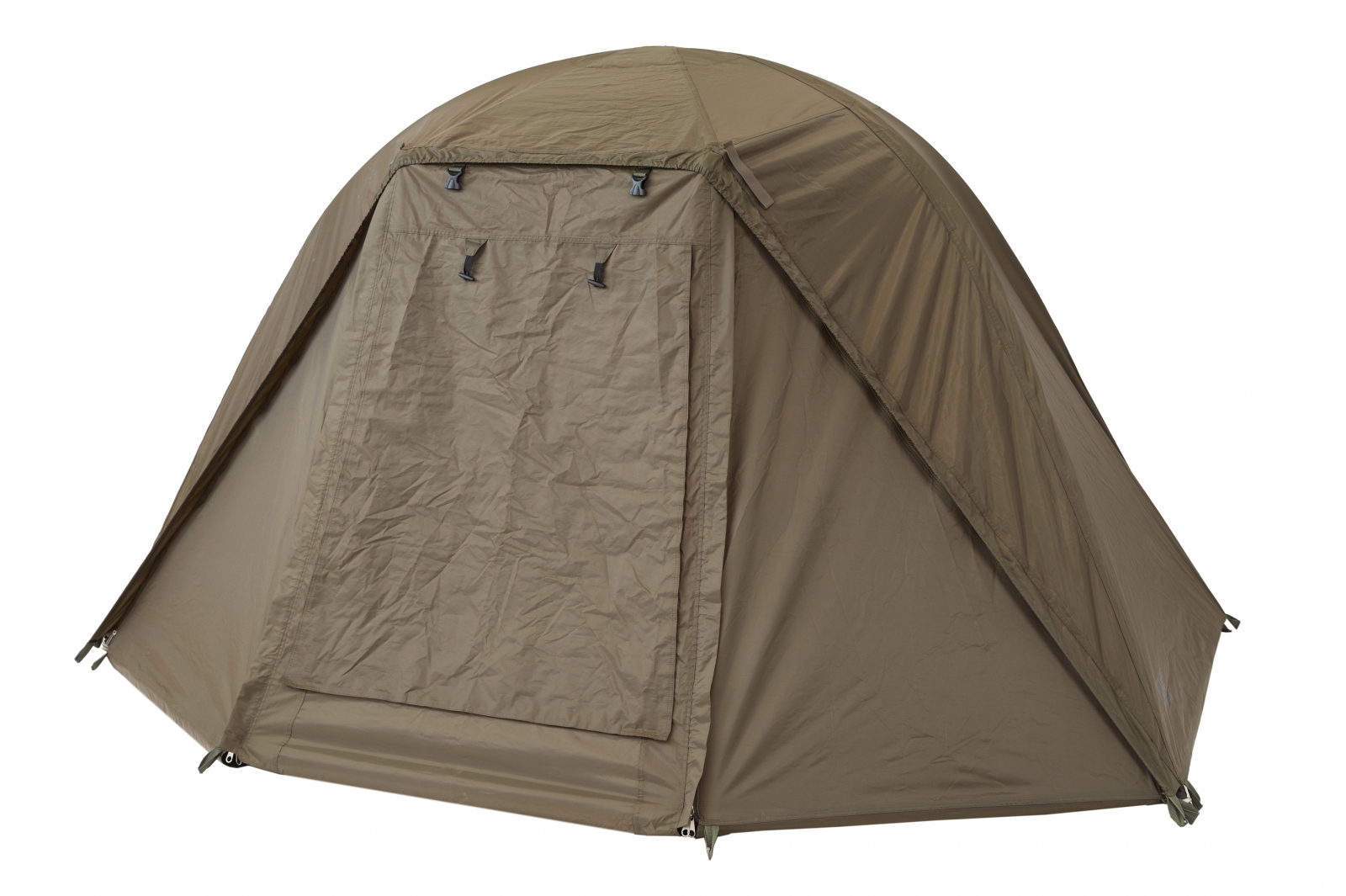 Jeho rozložení a důkladné vypnutí pláště je otázkou okamžiku. Zavrtávací bivakové kolíky se postarají o spolehlivé ukotvení. Jednoduchá, ale důmyslně navržená konstrukce z masivních trubek zajišťuje maximální stabilitu i v nepříznivém počasí a pomáhá udržet extrémně nízkou hmotnost. Tomu napomáhá i plášť z materiálu 210D s vodním sloupcem 5000 mm. Důkladné podlepení švů je samozřejmostí. Přístřešek je dostupný v základní (otevřené) variantě nebo v kompletní sadě s odepínatelným předním panelem.