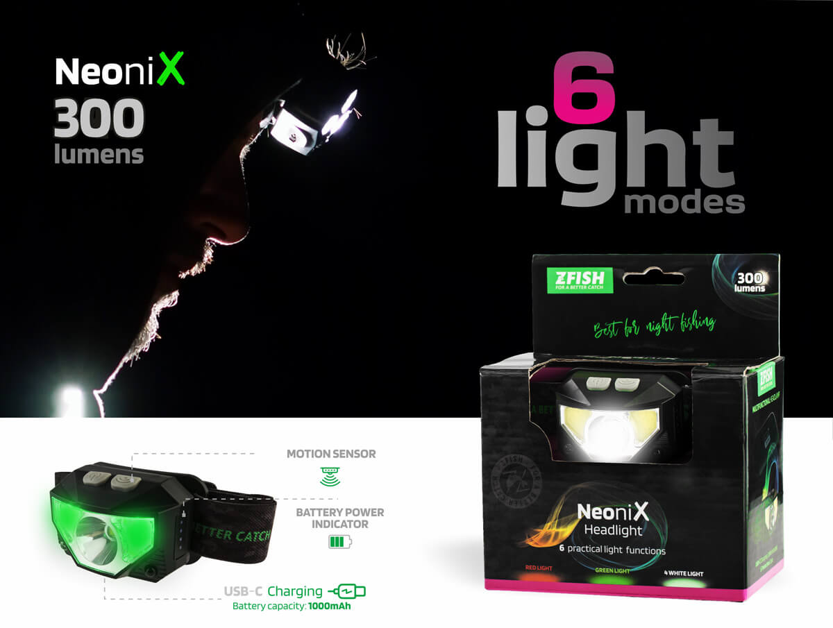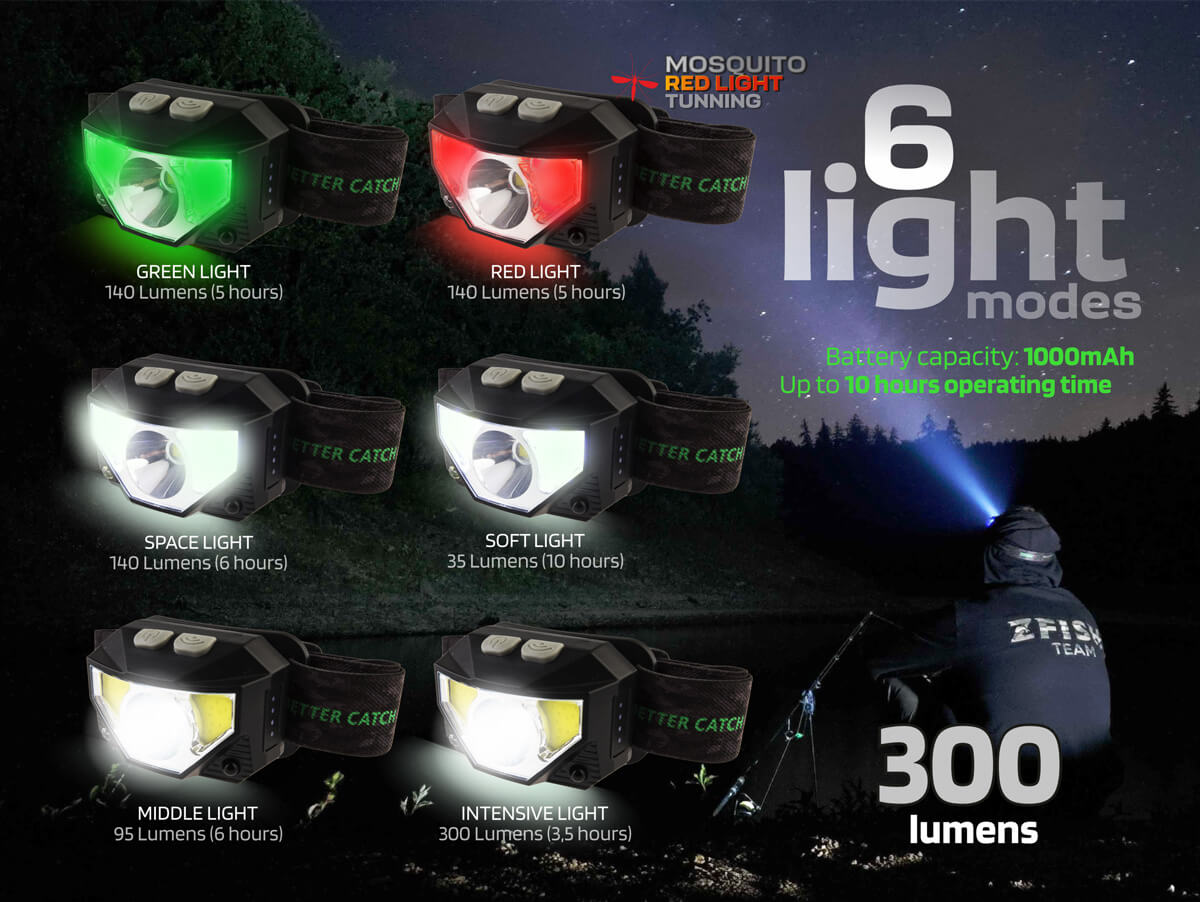 Lehká váha čelovek je důležitá pro komfort. Díky praktickým a hlavně pro rybáře velmi potřebným funkcím nabízejí širokou škálu světelných režimů pro různé situace u vody – od ostřejšího kužele přes rozptýlené světlo až po ambientní režim, tak aby splňovali požadavky i pro extrémní rybaření. Všechny modely jsou samozřejmě vybaveny zeleným a zejména červeným světlem Mosquito Red Light Tuning, které jsme optimalizovali na vyváženou vlnovou délku. Mosquito Red Light Tuning zajišťuje na jednu stranu velmi dobrou noční viditelnost, na druhou stranu, oproti jiným čelovkám tohoto typu, je upravená světelná frekvence tak, aby maximálně eliminovala přitahování obtížného hmyzu, komárů apod. Nechybí ani další praktické funkce, jako je paměťový režim pro automatické zapnutí posledního nastavení světelného módu, indikátor stavu baterie nebo pohybový senzor pro bezdotykové ovládání. Díky své minimální hmotnosti a nastavitelnému elastickému popruhu se čelovka velmi pohodlně nosí – téměř zapomenete, že ji máte na hlavě.