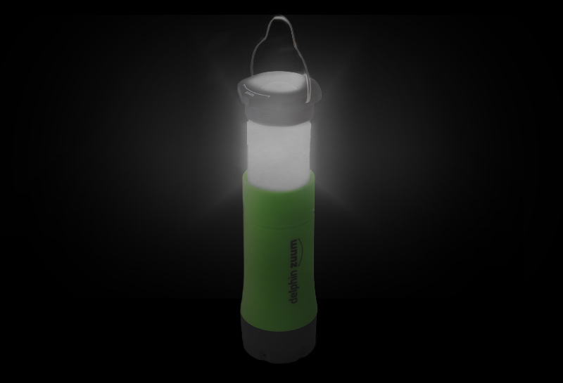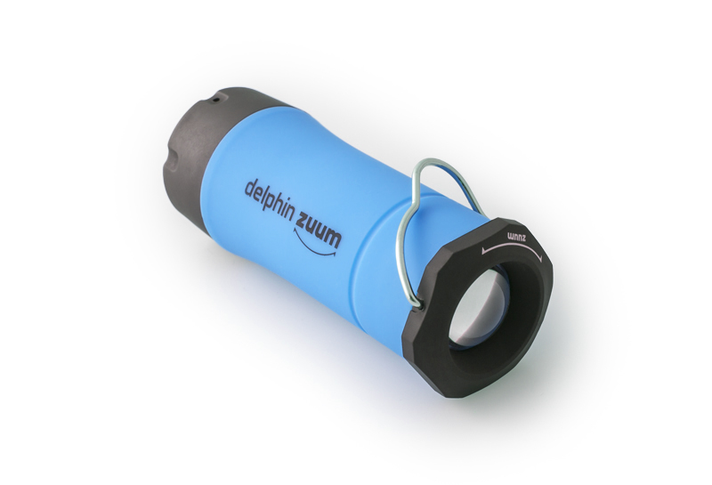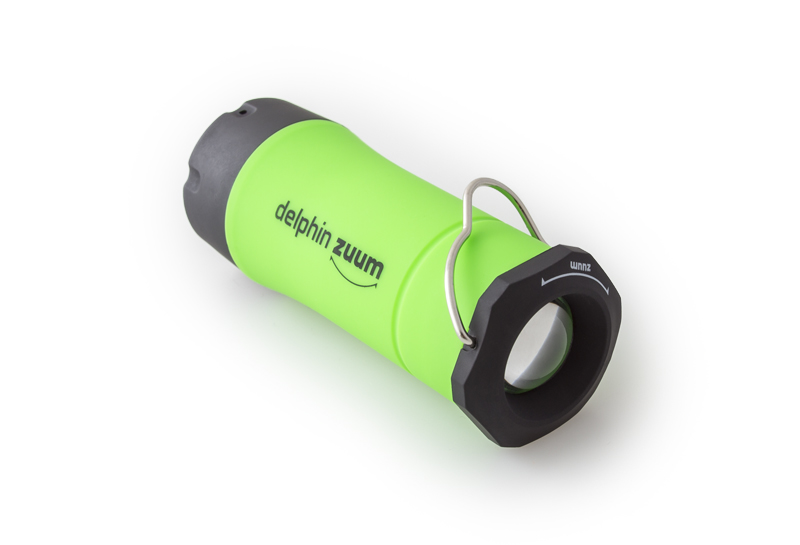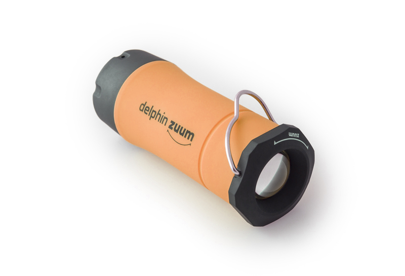 Delphin ZUUM je díky kompaktním rozměrům lehko přenosný a díky své multifunkčnosti přímo nenahraditelný společník za zhoršených světelných podmínek. Je ho možné použít jako klasické svítidlo do ruky, kdy světlo svítí přímým směrem z otočné hlavice. Pootočením je ale možné povytáhnout středovou část a udělat tak z baterky svítilnu. Tato svítilna sama stojí a navíc díky profilovanému drátěnému háčku ji můžete bez problémů i zavěsit. Tím ale výčet vlastností stále nekončí. Samotná LED dioda ve vnitřku má tři úrovně svícení: silné světlo, tlumené světlo a blikající stroboskop. Možnosti Delphin ZUUM jsou tedy nekonečné, od klasického ručního svítidla přes závěsnou svítilnu, světlo do bivaku, poziční světlo… ZUUM je nabízený ve 3 barevných provedeních těla: zelená, oranžová a modrá.