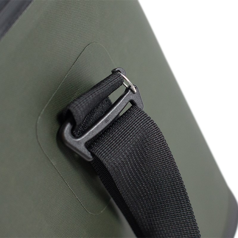 Víko je opatřeno prvotřídním nepromokavým a vzduchotěsným zipem, který uvnitř zachycuje studený vzduch a udržuje obsah v suchu. Je také vybaven držadly a ramenním popruhem pro snadnější přepravu.