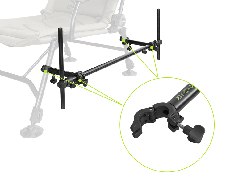 Na obou koncích produktu se nacházejí tyčky umístěné v plastových klipech, které lze posouvat ve vertikální rovině, případně otáčet. Na horním konci tyček se nachází univerzální závit určený pro různé druhy feederových držáků na pruty. Držák je na obou koncích teleskopický, takže jej lze vysunout podle vašich potřeb do každé strany. UniFIX DUO je vyroben převážně z hliníku, takže je extra lehký a barevně je laděn do černa s výraznými zelenými prvky, typickými pro celou sérii REAXE.