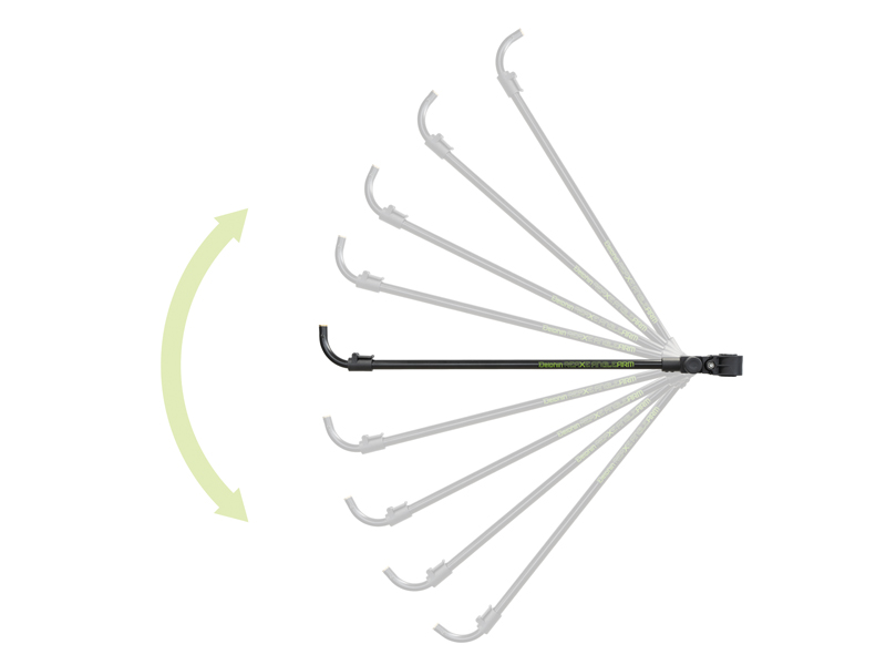 Rameno je navíc také výsuvné, fixovatelné plastovým zavíracím klipem a lze jej použít s různými délkami prutů. Použitý mechanismus výrazně zvyšuje celkovou variabilitu produktu a tím pádem je rameno použitelné v rozličných podmínkách a situacích, které vás u vody mohou potkat. AngleARM je designově navrženo v černé barvě s šedou a výraznou zelenou grafikou, podobně jako ostatní produkty z řady REAXE.