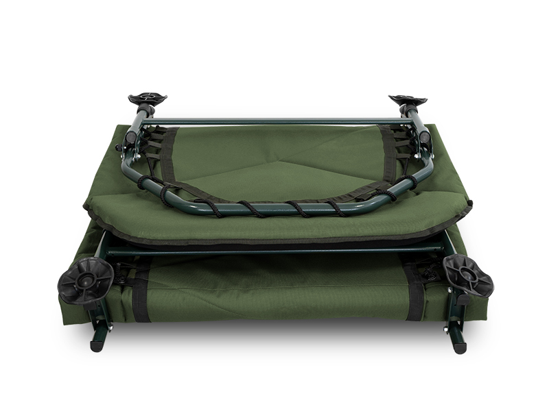 Jeho základem je velmi pevná, odolná a zároveň lehká konstrukce zelené barvy, která spolu s osmi nohami dodává lehátku potřebnou stabilitu. Výškově nastavitelné nohy jsou na koncích opatřeny robustními patkami na kulových čepech, což jim umožňuje přizpůsobit se nerovnostem terénu. Pár nohou pod hlavou je navíc opatřen zajišťovacím mechanismem, což usnadňuje rozložení lehátka a zároveň zabraňuje nechtěnému sklápění či posunu.