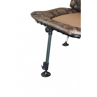Je vhodná téměř pro všechna klasická rybářská lehátka s kulatým profilem. Upěvnění zajišťuje tzv. odklopný kloub s utahovacím šroubem a maticí. Noha je vybavena kloubovou patkou proti zaboření a zároveň je výsuvná pro jednoduché nastavení výšky.