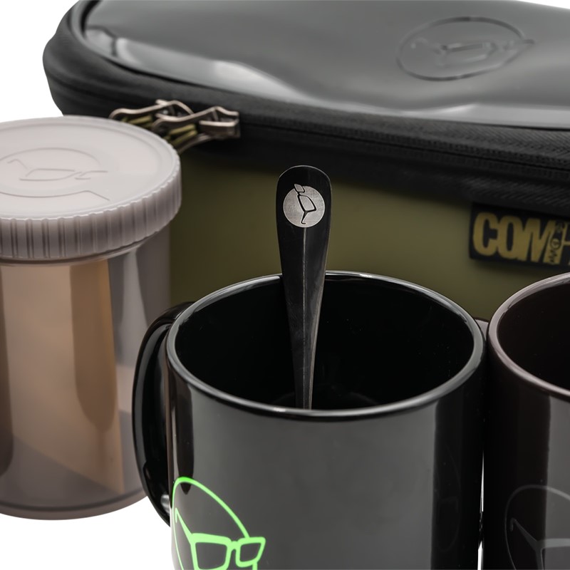 Každá sada obsahuje také tři plastové dozy se šroubovacím víčkem s logem Korda a určené pro skladování kávy, čajových sáčků a cukru.