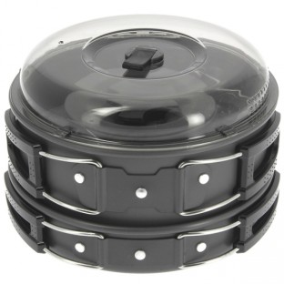 Kompaktní set nádobí ideální pro rybáře a outdoorové nadšence. Set se skládá z konvičky, hrnce s víkem a pánvičky. Vše je vyrobeno z lehkého, eloxovaného hliníku, a vše přesně pasuje do sebe. Díky silnější hliníkové vrstvě pánve i hrnce, byla umožněna kvalitnější nepřilnavá úprava. Pánve mají odolné skládací rukojeti, které umožňují velmi kompaktní složení.
