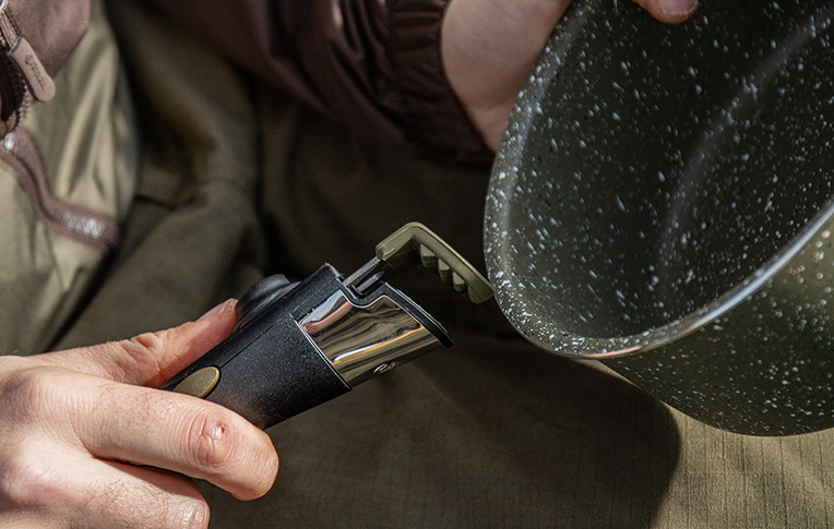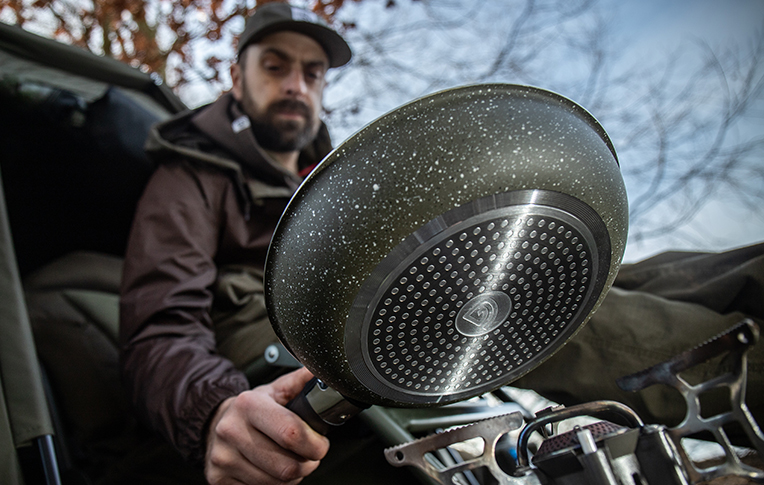 Je vyrobena z extra silného 2,5mm hliníku s nerezovou základnou a potažena dvěma vrstvami mramorového povlaku, který jí dodává profesionální vzhled a dokonale nelepivé vlastnosti. Pánve jsou navrženy pro všechny zdroje tepla, takže je využijete jak doma nebo u vody. Každá sada obsahuje hrnec, pánev a odnímatelnou rukojeť, která je kompatibilní napříč mezi sadami. Rukojeť má dvojčinnou bezpečnostní západku, která zabraňuje nechtěnému uvolnění při manipulaci s horkou pánví.