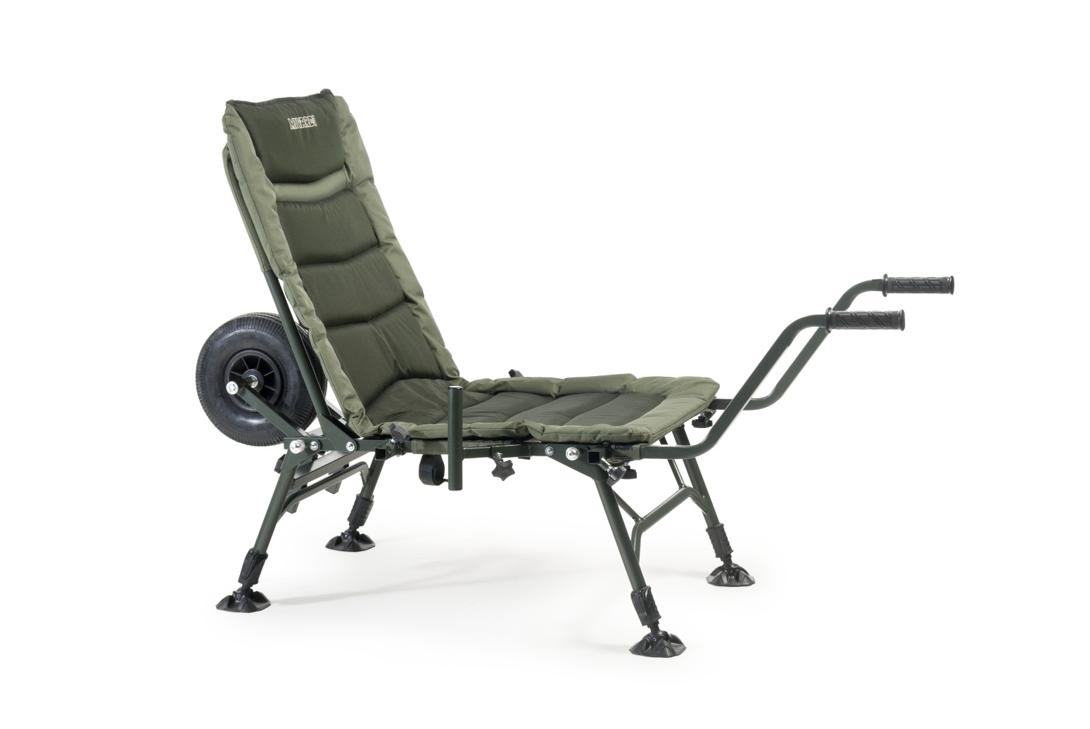 Ty mohou být umístěny až v osmi různých pozicích po obvodu křesla. Čtyři teleskopické nohy jsou osazeny velkými patkami proti zaboření. Z křesla lze během okamžiku vytvořit robustní přepravní vozík s nafukovacím kolem a dvěma rukojeťmi. Součástí dodávky je omyvatelný ochranný návlek na matraci a jeden boční adaptér na příslušenství. Křeslo i vozík mají nostnost 150kg.