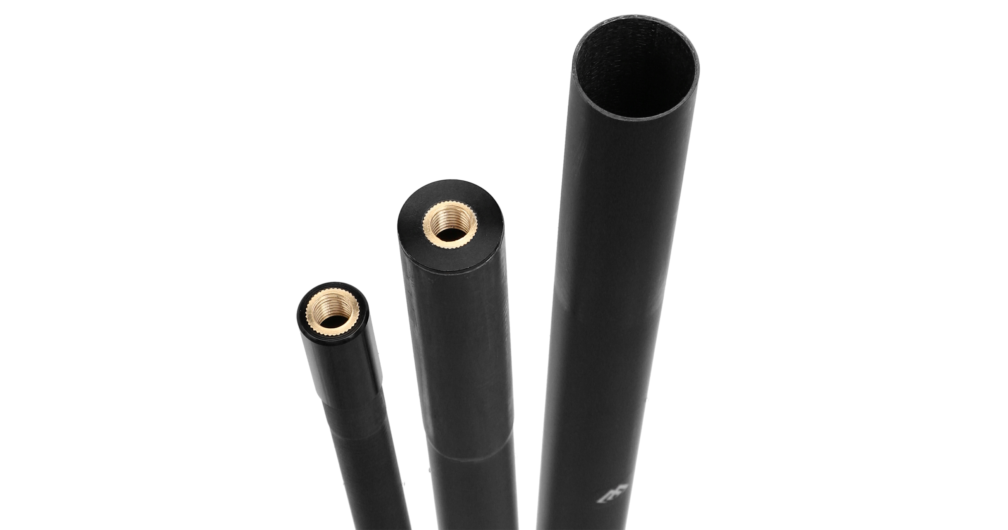 Profesionální nasazovací tyč k podběráku s dvojí délkou z prvotřídního, lehkého a tuhého uhlíkového vlákna.