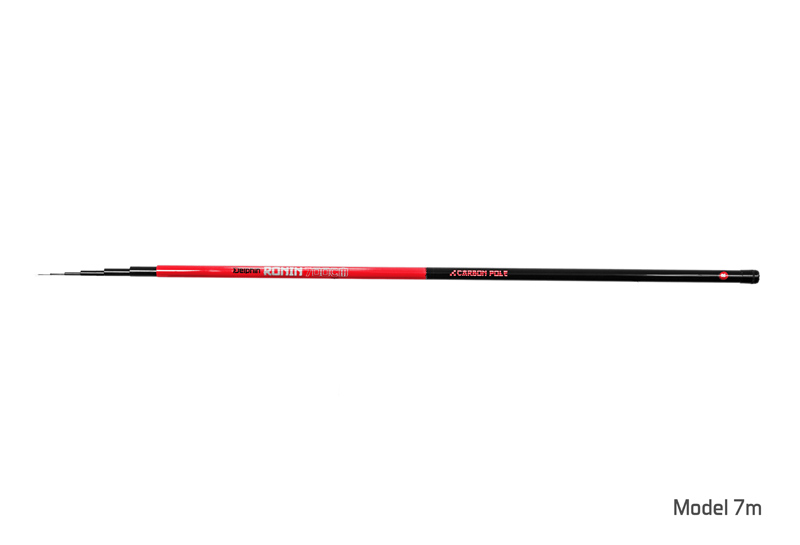 RONIN je vyroben z kvalitního uhlíku, proto je velmi lehký, ale zároveň ohebný a pevný. Jeho konstrukce zajišťuje okamžitý zásek ryby. Samozřejmostí je kovové koncové očko na uvázání návazce.