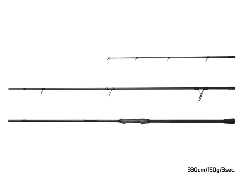 Ze stejného důvodu jsme prut opatřili pevnými karbonovými špičkami. K extrémním hodům přispívá i dlouhá rukojeť prutu opatřená shrink materiálem a v koncové části rozšířením z EVA pěny pro pevný a razantní úchop. Ergonomicky tvarované Fuji sedlo je velmi pohodlné a přispívá ke snížení únavy i při častém nahazování. Pro maximální zajištění navijáku během extrémních hodů je sedlo opatřeno dodatečnou kovovou maticí. Prut je osazen kvalitními a pevnými SeaGuide očky s keramickou výplní. Celý prut je vyhotoven v elegantní matné černé barvě ve které vyniká karbonová textura blanku, černá očka a jejich vázání a černé sedlo.