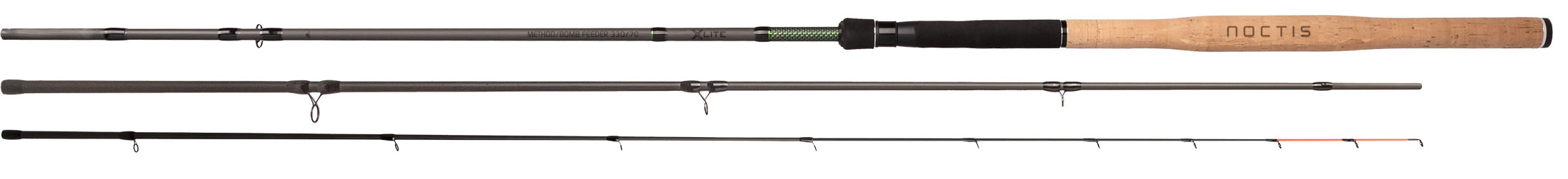 Super tenký blank s extrémně lehkým vybavením je skvělý na závody a pro náročný lov středních ryb. Noctis X Lite Method Bomb Feeder je špičkový prut navržený pro techniky method feeder a bomb feeder. Jeho super tenký blank z 30T karbonu a extrémně lehké vybavení zajišťují rychlou akci a vysokou citlivost, což oceníte při lovu středně velkých ryb. Prut je vybaven třemi výměnnými špičkami o průměru 2,8 mm (0,75 oz, 1 oz, 1,5 oz), ultra lehkými a odolnými očky Seaguide TDG s nerezovými kroužky, lehkým sedlem navijáku VSS a ergonomickou rukojetí z kombinace korku a EVA pěny. Elegantní matné provedení s minimalistickým designem podtrhuje jeho moderní vzhled.