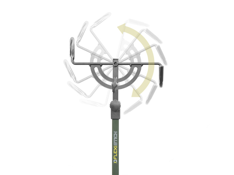 Teleskopickou tmavě zelenou tyč lze vysouvat podle potřeby a navíc má čtvercový tvar, čili nehrozí nechtěné přetáčení prutu.