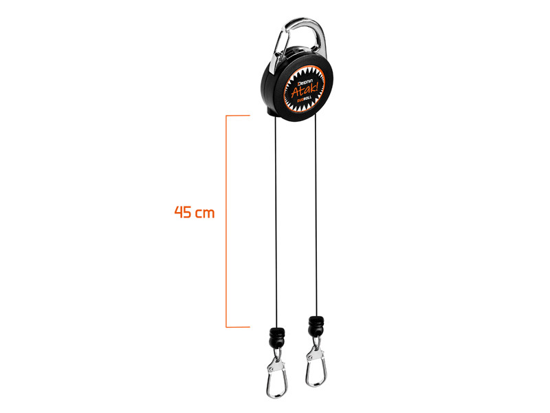 Disponuje dvěma samostatnými karabinkami, na které lze upevnit různé přívlačové příslušenství, ať už jde o kleště, peán nebo nůžky. K oblečení je DuoRoll možné uchytit pomocí pevné kovové karabinky ve vrchní části, díky které se nemusíte bát jeho ztráty během lovu. Efektní ATAK! design jen podtrhuje, pro jakou skupinu rybářů je tento produkt primárně určen.