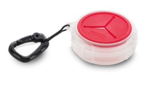 Magnet na dně krabičky brání kovovým kouskům chrastit. S karabinou k připnutí k dalšímu vybavení a snadnému přístupu.