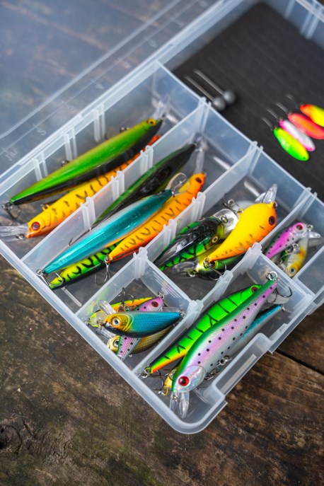 Praktická a přehledná konstrukce umožňuje rychlý přístup k nástrahám a bezpečné uložení vybavení.