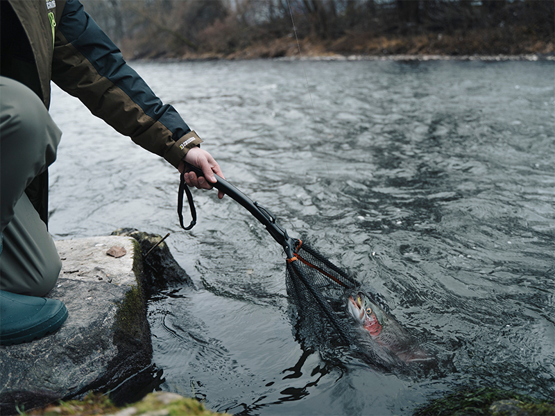 Díky kompaktním rozměrům a klipu na rukojeti jej lze upevnit na opasek brodících kalhot, čímž je okamžitě k dispozici. Jednoduchý mechanismus umožňuje jeho rychlé rozložení a složení jednou rukou, což oceníte zejména při zdolávání ryby při zabrodění ve vodě. Měkká pogumovaná síťka je šetrná k rybě a zároveň nenasává nepříjemné pachy.
