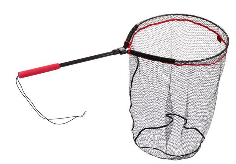 Výborně se hodí na chytání z belly boatu, pomocí 50 cm dlouhé pružné šňůrky s karabinkou ho jednoduše k belly boatu přicvaknete bez rizika ztráty. Skládací karbonový podběrák snadno ovládnete jednou rukou.