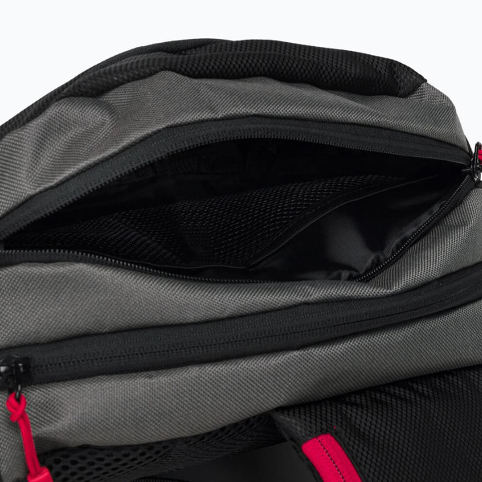 Hlavní komora se hodí na nástrahové boxy a malé příslušenství. Malé boční kapsy na drobnosti a horní D-kroužek lze použít jako držadlo pro podběrák.