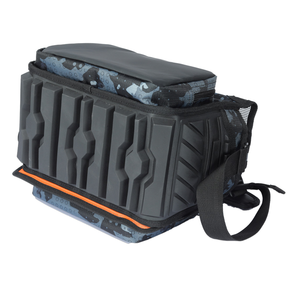 Vláčecí taška střední velikosti, která obsahuje tři větší a dvě menší krabičky na nástrahy.