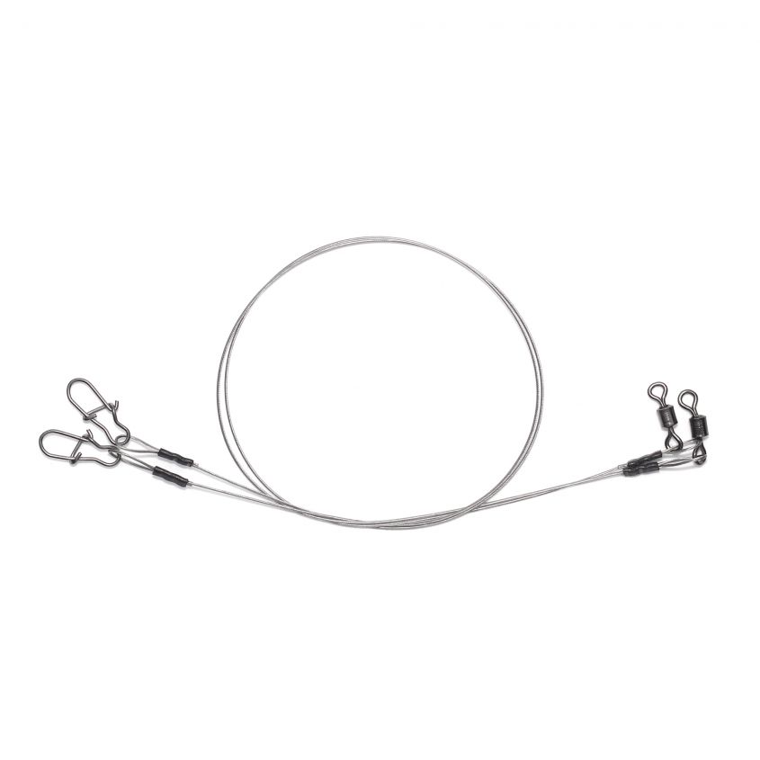 Velmi jemné a odolné lanko Arnold splétané ze 7 vlánek po 7 pramenech, potažené nylonem, s obratlíkem a karabinkou.