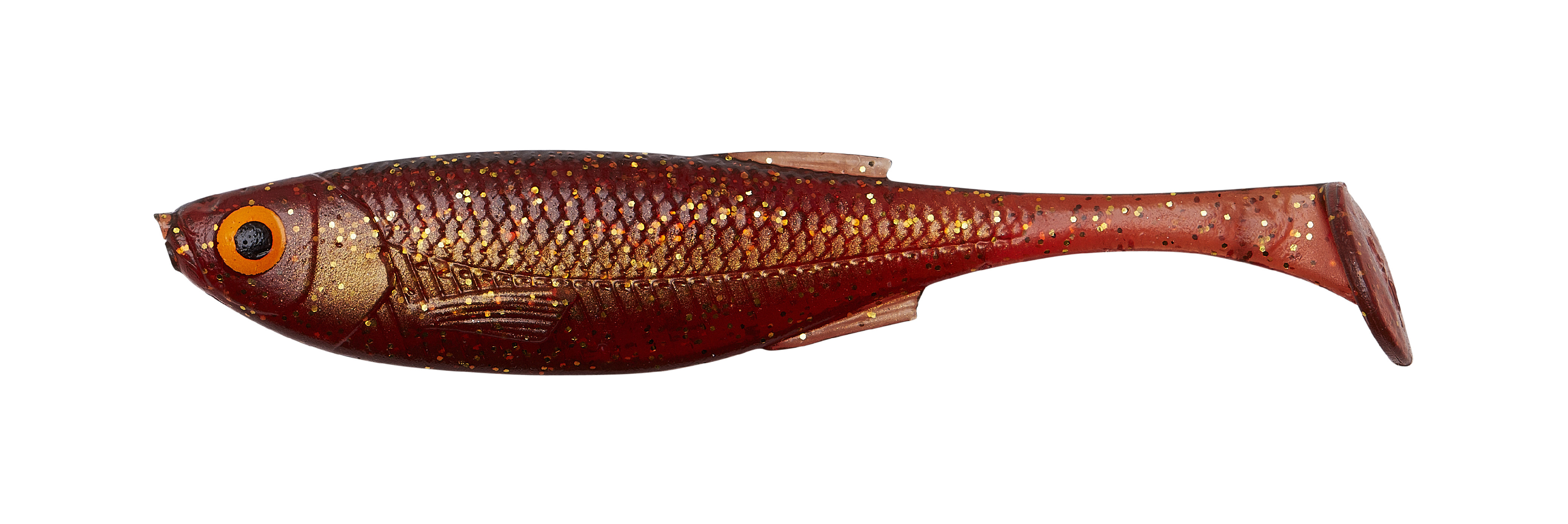 Velké realistické jemné oči s dokonalými detaily. Dlouhý štíhlý ocasní můstek s pádlem ve tvaru písmene T zajišťuje pulzující pohyby při stoupání a následovném propadu nástrahy.