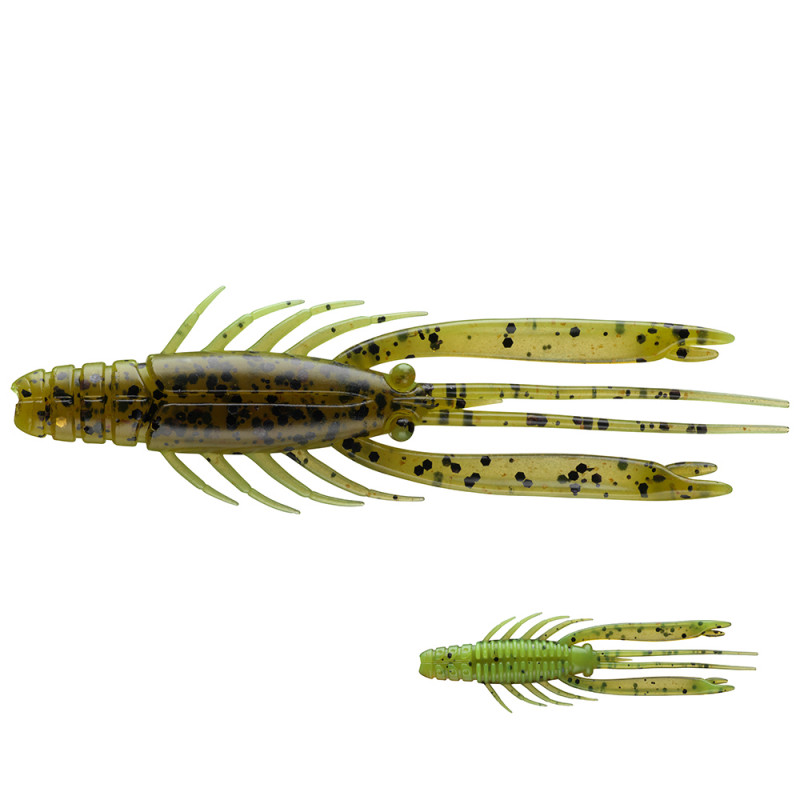 Extrémně měkká guma je opatřena příchutí krevety a tak vyvolává agresivní záběry i během zastávek. Klepeta i nohy vibrují při pomalé rychlosti vedení. Se štěrbinou pro offsetový háček na zadní straně. Ideálně se hodí pro lov na drop-shot a také na montáže Cheburaska-rig, Free-rig a Carolina-rig. Neobsahuje ftaláty.