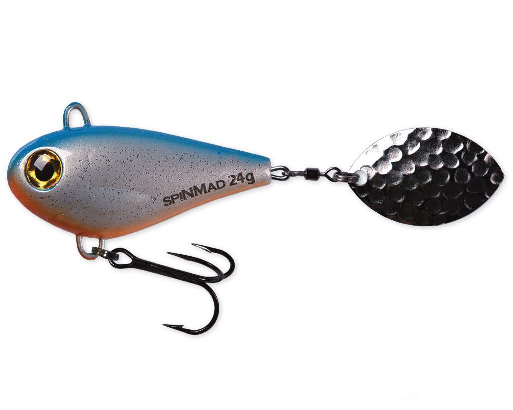 Tělo nástrahy je vyrobeno z pevného a odolného kovu, což umožňuje dlouhé a přesné hody i ve větrném počasí. Zadní lopatka, umístěná na otočném kroužku, pracuje okamžitě po dopadu do vody a při navíjení generuje výrazné pohybové impulsy. SpinMad Jigmaster je ideální pro lov okounů, štik, candátů a bolenů, ale funguje i na hlubších místech, kde je třeba dostat nástrahu rychle ke dnu.