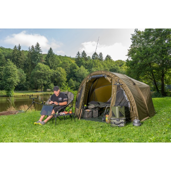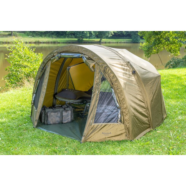 Bivak deštníkové konstrukce. Velkou výhodou je velmi snadná a rychlá manipulace. Dá se použít jako brolly (pouze deštníková konstrukce) nebo můžeme připevnit přední díl, čímž získáme celý bivak. V zadní části jsou dvě okna s moskytiérou, které zaručují dokonalou cirkulaci vzduchu.