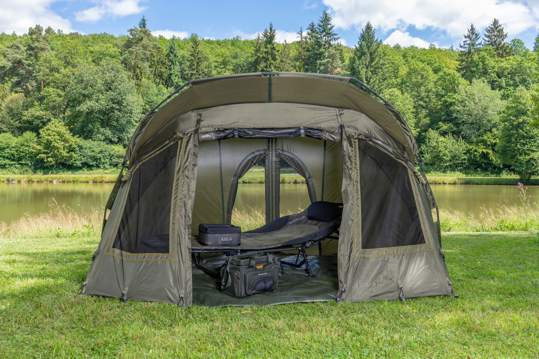 Perfektní, stabilní Bivak! Moon Breaker 3.1 je díky jeho inteligentní hliníkové rámové konstrukci extrémně stabilní v dešti a bouři. Bez problému se v tomto prostorném bivaku vyspí 2 osoby. Dvě zadní okna s moskytiérou zajišťují dobrou cirkulaci vzduchu, zejména v létě. Velký kšilt zabraňuje vnikání dešťové vody vstupním prostorem. Bivak je dodáván bez zimního přehozu, který je možno dokoupit.