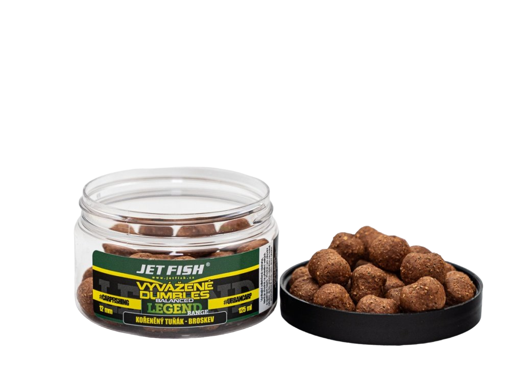 Jet Fish Vyvážené Boosterované Dumbles Legend Range Kořeněný Tuňák Broskev 200ml Průměr: 12mm, Objem: 200ml