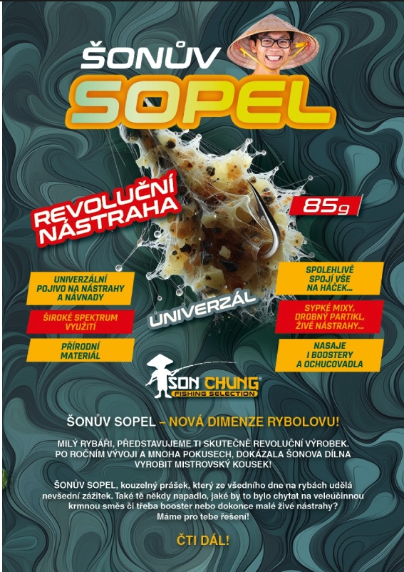Objevte novou dimenzi rybolovu s Šonovým Soplem – inovativním práškem, který promění běžný den u vody v neobyčejný zážitek. Po roce vývoje a testování přichází mistrovský produkt, který umožňuje vytvářet nejen dokonalé nástrahy, ale i návnady.