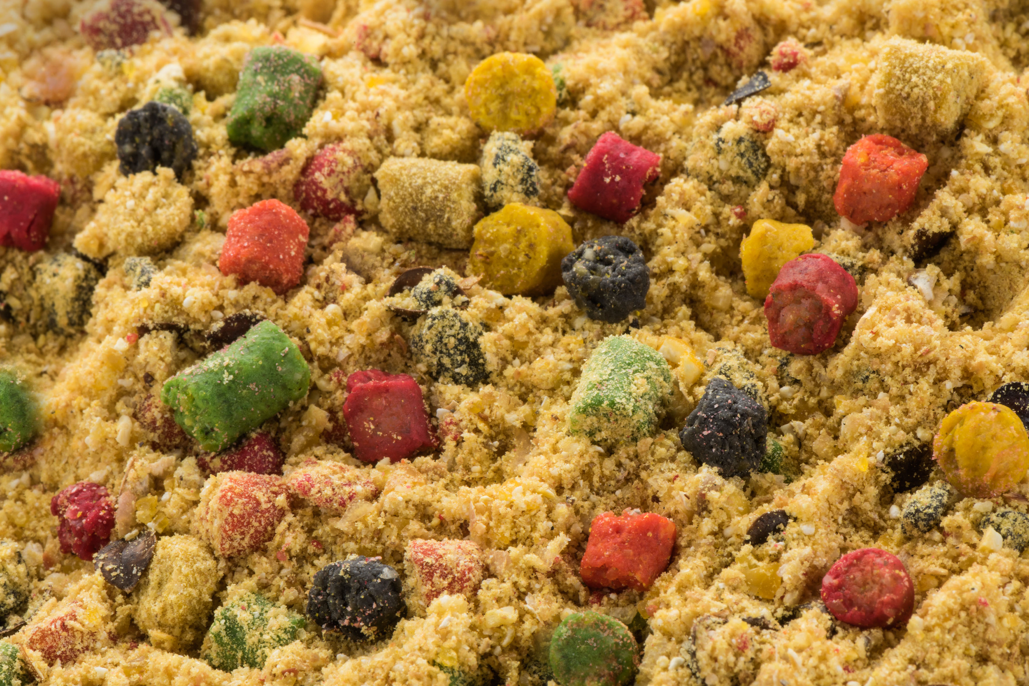 Směsi R1 obsahují peletky různých barev, které podporují vizuální stimulaci ryb. Dále jsou obohaceny o mleté zmrzlinové oplatky, jež zajišťují dokonalou lepivost a optimální konzistenci ve vodě. Speciálně vybrané chuťové stimulanty, jako jsou Kukuřice, Biscuits a Strouhanka, zvyšují atraktivitu směsi a podporují aktivní příjem potravy.