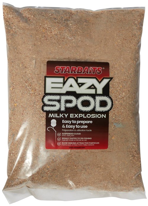Díky jeho struktuře vytváří ve vodě intenzivní lákavý oblak, který se dlouho drží ve vodním sloupci. K vysoké atraktivitě napomáhá i intenzivní barva, která má mrakovací efekt. Eazi Spod mix je ideální pro rychlé nalákání kaprů na krmné místo nebo lov ve sloupci. Skvěle se hodí i pro závodní rybolov.