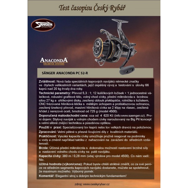 Velké množství zkušeností, které jsme získali v průběhu posledních desetiletí v cíleném lovu kaprů nás inspirovalo k vyvinutí celé řady nových, kvalitních výrobků řady PC 52 pro lov těch největších a nejtěžších kaprů. Za poslední dva roky, kdy byl tento naviják vyvíjen a testován na různých evropských vodách, bylo zaznamenáno spousta úspěchů. Bylo vytaženo 53 kaprů nad 20 kg, 10 kaprů nad 30 kg a 3 kapři atakující hranici 35 kg. Inovativní novinkou je přepínač volnoběžky, který poskytuje vnitřní prostor pro umělé světlo Beta Light o tloušťce 4 x 20 mm. Zadní strana páky přepínače je opatřena 4 otvory, kterými po sepnutí páčky proniká světlo a signalizuje, že je volnoběžka připravena k provozu. Velká, mělká cívka navijáku umožňuje dlouhé a přesné náhozy.