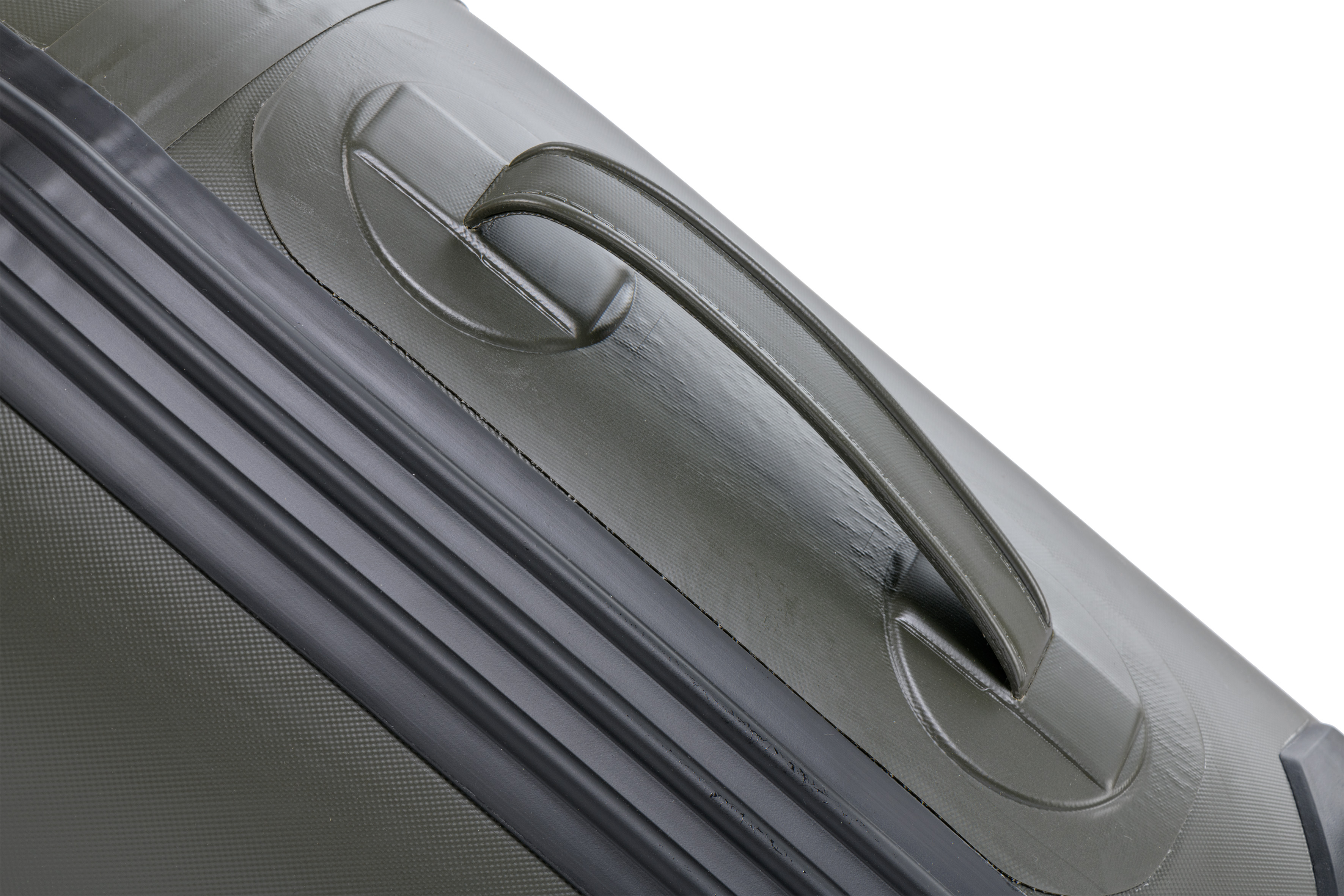 Nadstandardní šířka a specifický tvar člunu zajišťují extrémně velký vnitřní prostor. Ten je vždy výrazně větší než u běžných člunů stejné délky na trhu. Tomu napomáhá i specifické řešení zadní části plováků, které dovoluje umístit zrcadlo co nejblíže ke konci plováků a zároveň zachovat jejich funkci při udržování směru jízdy. Výrazně zdvihnutá příď spolu se speciálním tvarováním přední části, mohutným nafukovacím kýlem v celé délce podlahy a speciálně tvarovaným zrcadlem zajišťují vynikající hydrodynamické vlastnosti člunu a směrovou stabilitu. To v praxi znamená vyšší rychlost , snadnější ovládání a nižší spotřebu energie při pohonu člunu. Zesílený materiál plováků zvyšuje odolnost proti proražení. Nafukovací podlaha se zdvojenou nášlapnou vrstvou je téměř nezničitelná a její zelená barva skvěle ladí s se zbarvením člunu i černými vesly a ostatními doplňky. Každý člun je vybaven řadou upínacích pásků na suchý zip v přední části i na zrcadle. Najdeme zde i masivní upínací popruh na příslušenství ve střední části.