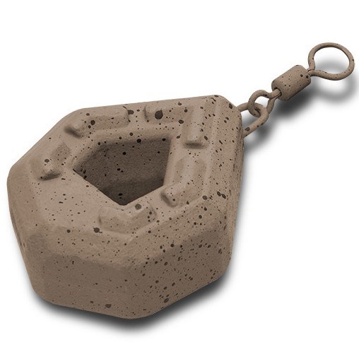 Díky jedinečnému hranatému tvaru bylo možné vytvořit kompaktnější zátěž, která má při menších vnějších rozměrech stejnou hmotnost jako běžně prodávaná olova podobného typu. To zaručí výborné nahazovací vlastnosti a rychlé klesání ke dnu. Pro docílení co nejdelších a nejpřesnějších hodů je navíc spodní část zátěže rozšířena, aby se zde koncentrovalo více hmoty, a tak prodlužuje vaše hody o další důležité metry! Výstupky na hlavních plochách zátěže eliminují klouzání po dně. Otvor ve středu zátěže umožňuje rychlejší klesání montáže vodním sloupcem. Povrch zátěže je chráněn barvou v přírodních odstínech hnědé s černými frkanci, což dokonale kamufluje její přítomnost na dně. Zvětšené očko na obratlíku umožňuje snazší a rychlejší upevnění zátěže na montáž.