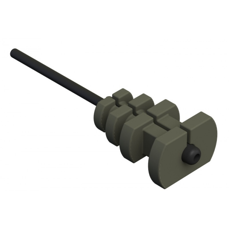 Pokud chcete, aby obratlík kladl odpor při vytrhávání a plnil tak funkci prvního záseku při záběru, zvolte obratlík o průměru 3.5 – 4mm. U většího průměru nemáte jistotu, že ryba po záběru obratlík z adaptéru vytrhne. Gumový adaptér funguje částečně jako šokový absorbér a zároveň chrání i uzel na obratlíku. V tomto systému lze použít i hadičku proti zamotání návazce, kterou lze zasunout do horního konce adaptéru. Každá zátěž ze systému BRUCE je dodávána s jedním gumovým adaptérem