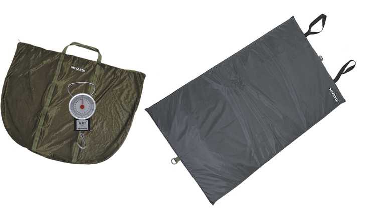 Obsahuje podložku na odháčkování se silným polstrováním a omyvatelným potahem, je doplněná o prostornou síťku z rychleschnoucího materiálu, šetrnou vůči rybám. Sadu doplňuje váha s vysunovacím metrem.