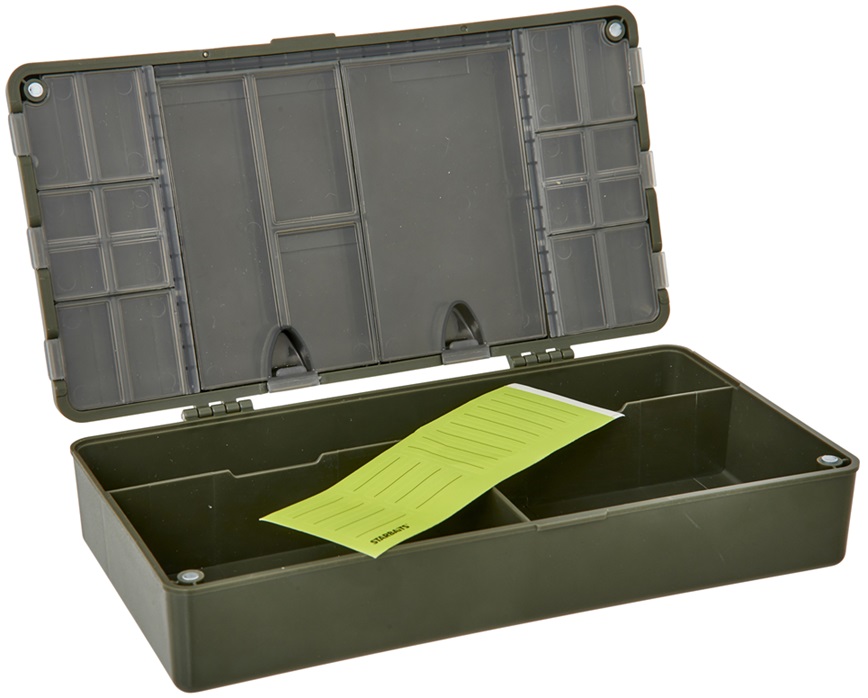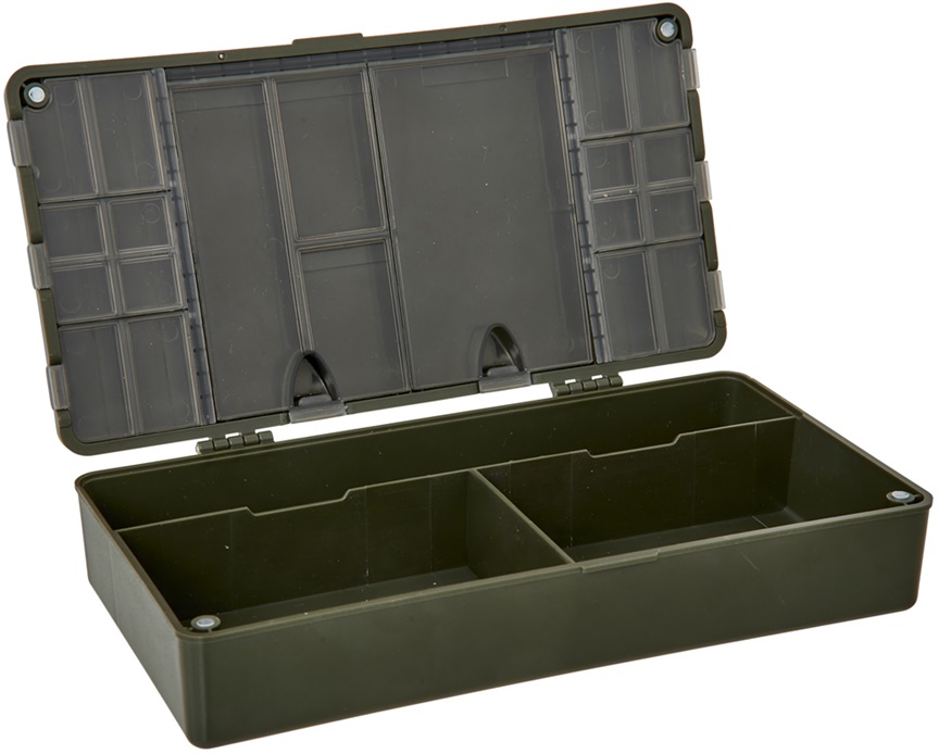 Skládá se ze dvou částí – první tvoří velký otevřený prostor ideální pro uložení jehel, nůžek, zapalovače nebo cívek s pletenkou. Druhá část je vybavena průhlednými přihrádkami s víčky, díky kterým máte přehled o uloženém vybavení. Díky kompaktním rozměrům je ideálním společníkem na každou rybářskou výpravu.