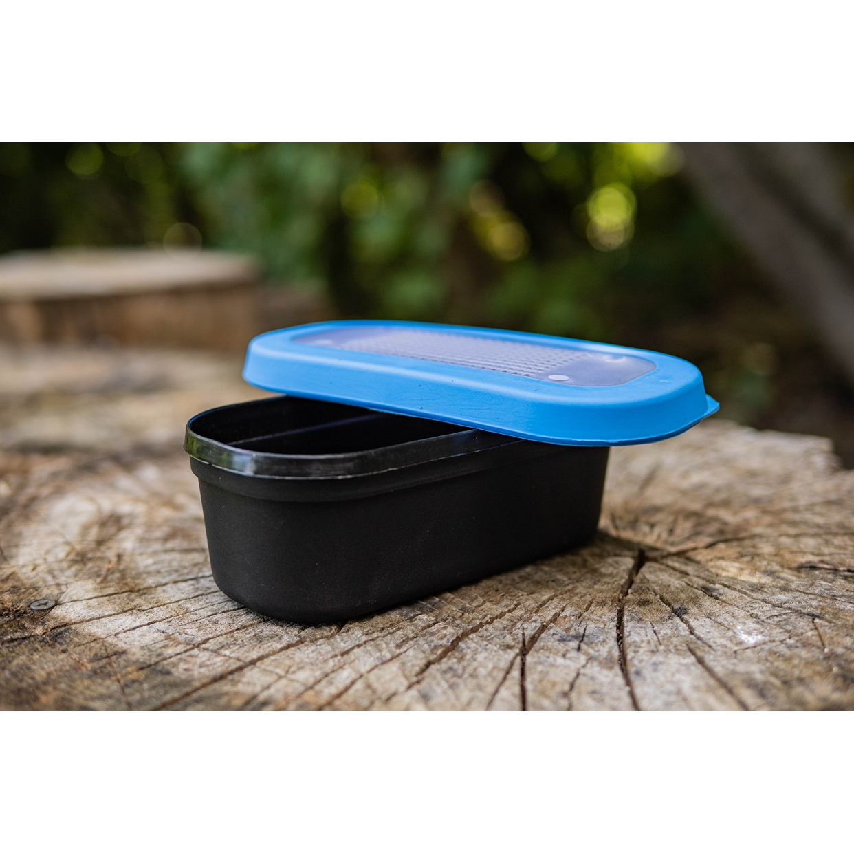 Plastová krabička s perforovaným víčkem, která je určená pro přechování červů a žížal.