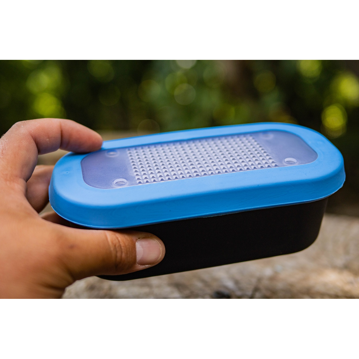 Perforované víčko krabičky má okraje vyrobené ze silikonu, takže se snadno otevírá a uzavírá.
