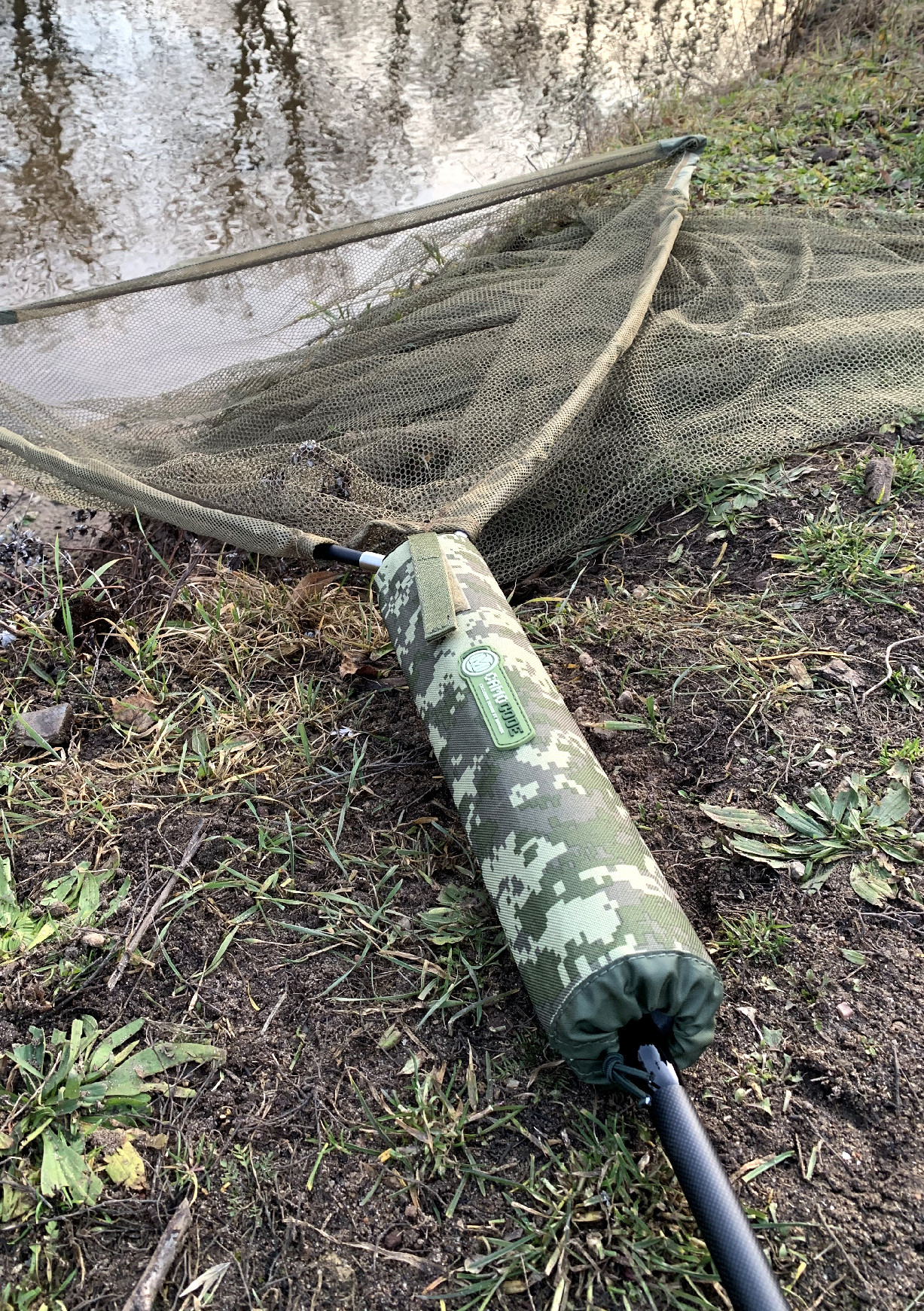 Prodloužený plovák na podběrák s velkým výtlakem, vyrobený z kvalitního materiálu B-POL 600D v unikátním CamoCODE designu. Plovák je vybaven elastickým úchytem podběrákové síťky.
