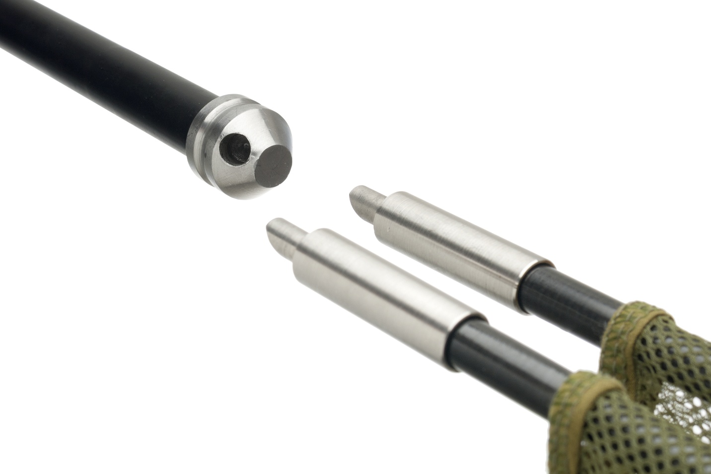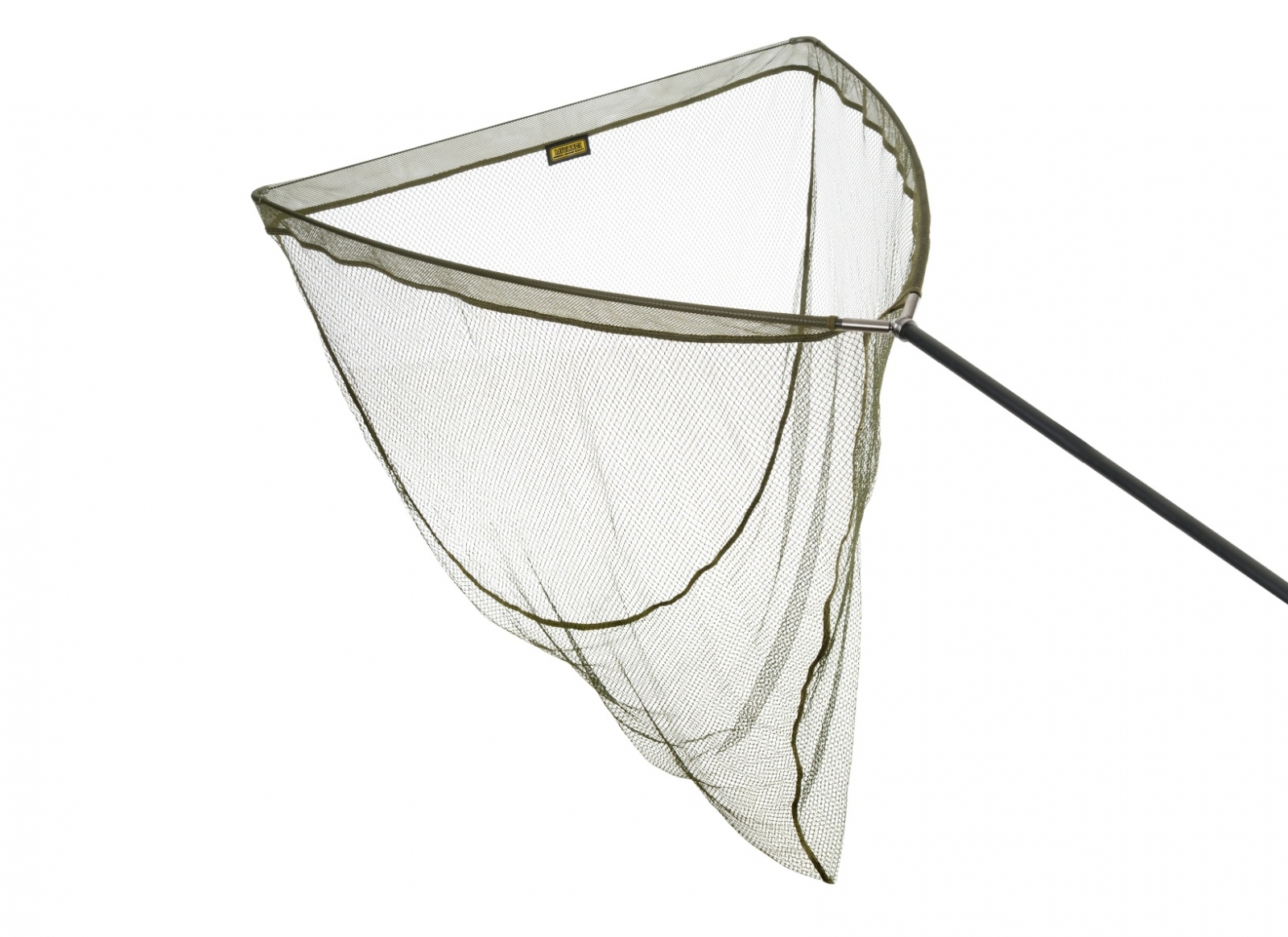Luxusní kaprový podběrák se zpevněnými uhlíkovými rameny délky 1m a maximálně odlehčenou síťkou olivově zelené barvy.
