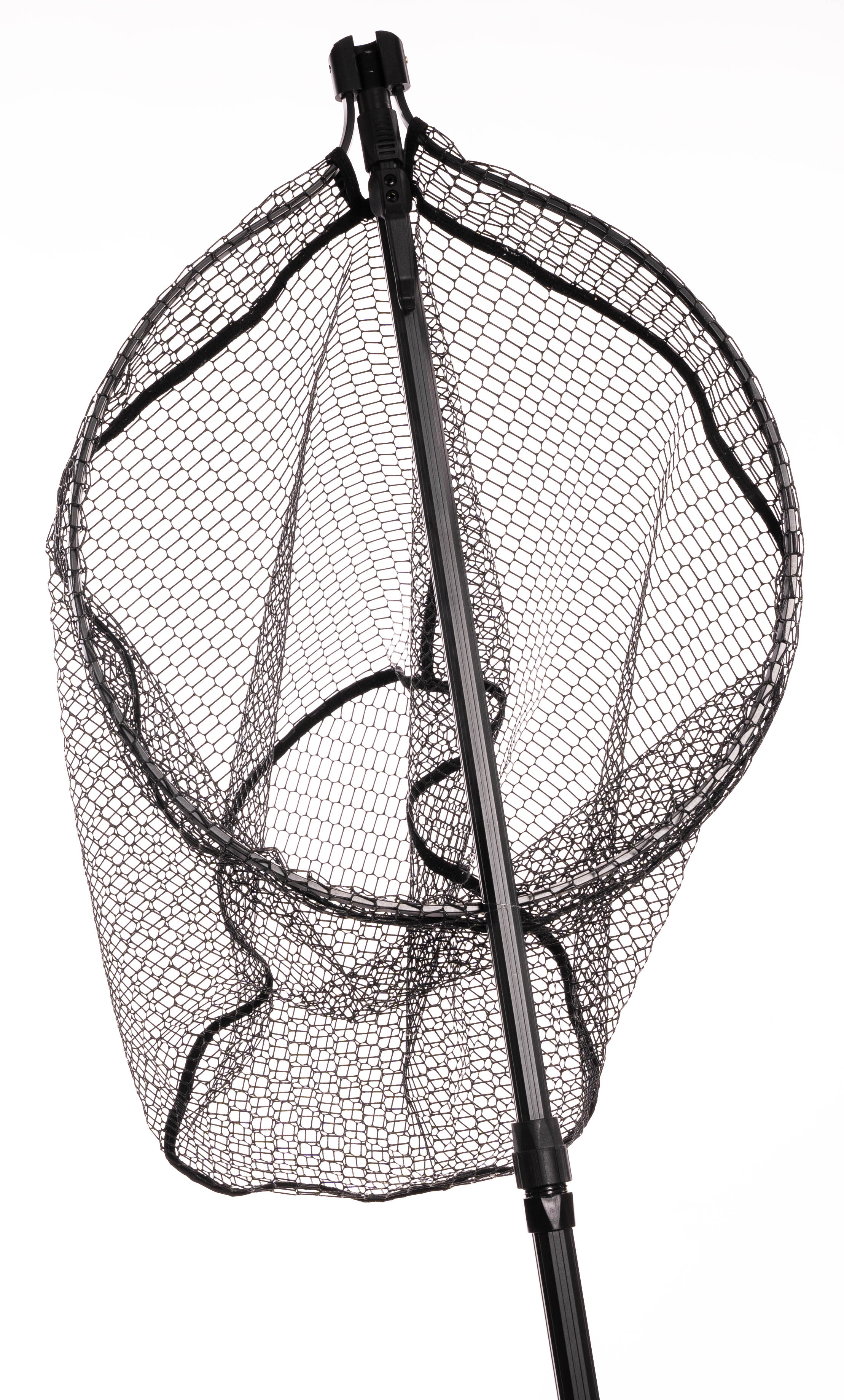 Velice praktický teleskopický podběrák se sklopným systémem hlavy, pogumovanou síťkou a klipem pro zavěšeni na opasek, vestu nebo batoh.