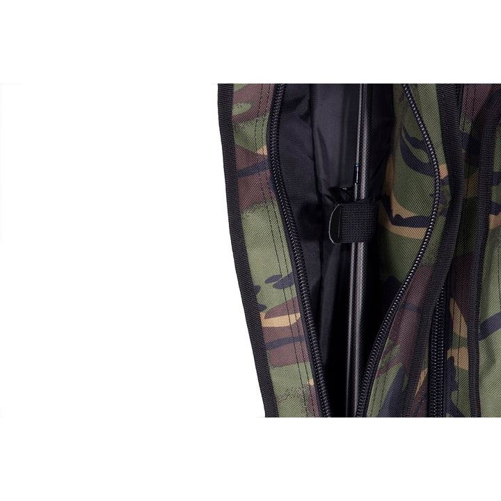 Tři snadno přístupné, oddělené části na zip pro umístění tří prutů.