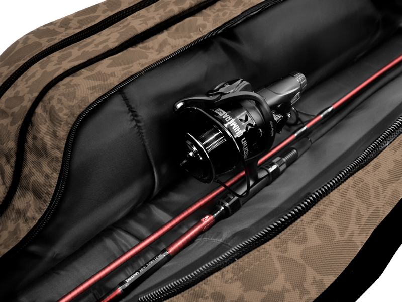 Stěny pouzdra jsou důkladně polstrované 6mm hrubou výstelkou a vnitřní prostor poskytuje dostatek místa pro pohodlné uložení jakýchkoliv kaprařských prutů s navijáky. Dokonce i pruty s 50mm naváděcím očkem se do pouzdra vejdou snadno a s dostatečnou rezervou. Každá komora má zvláštní zipovatelný vstup, což zajišťuje, že pruty jsou po celou dobu od sebe odděleny a dokonale zafixované pomocí praktických uložení ve spodní části a také páskami se suchým zipem. Díky zmíněným vlastnostem je zaručeno, že během transportu a při manipulaci s pouzdrem je výbava uvnitř maximálně chráněna.