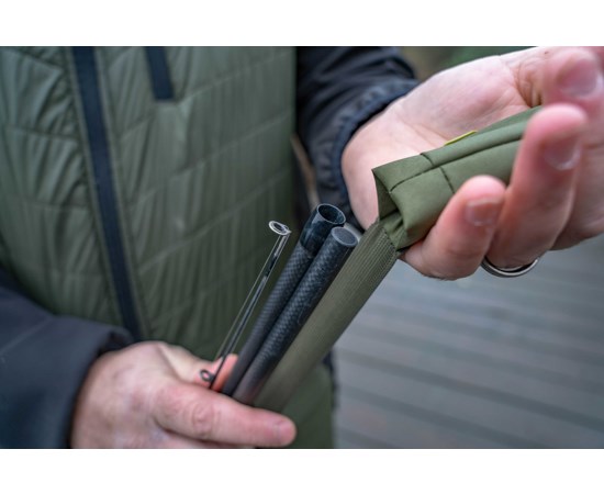 Tato kompaktní polstrovaná ochrana prutů je kompatibilní se všemi obaly na pruty a Quivery Korum. Elastickou část lze nastavit tak, aby vyhovovala dvoudílným prutům o délce 8 až 13 palců(2,4 m-3,90 m).