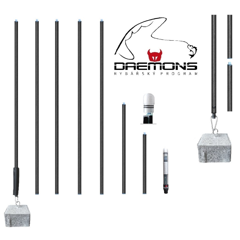 Díly bójky spojujeme postupně sešroubováním potřebných délek dílů, kdy vždy začínáme dílem s kotvou a skončíme tak, aby spoj posledního dílu s elektronikou bójky vyčníval alespoň 10 cm nad hladinu, případně i výše tak, aby elektronika vždy vyčnívala nad případné větší vlny. Součástí balení bójky DAEMONS 05 R je také betonová kotva o váze 1,7kg s okem a karabinou pro uchycení na spodní kotvící díl bójky.