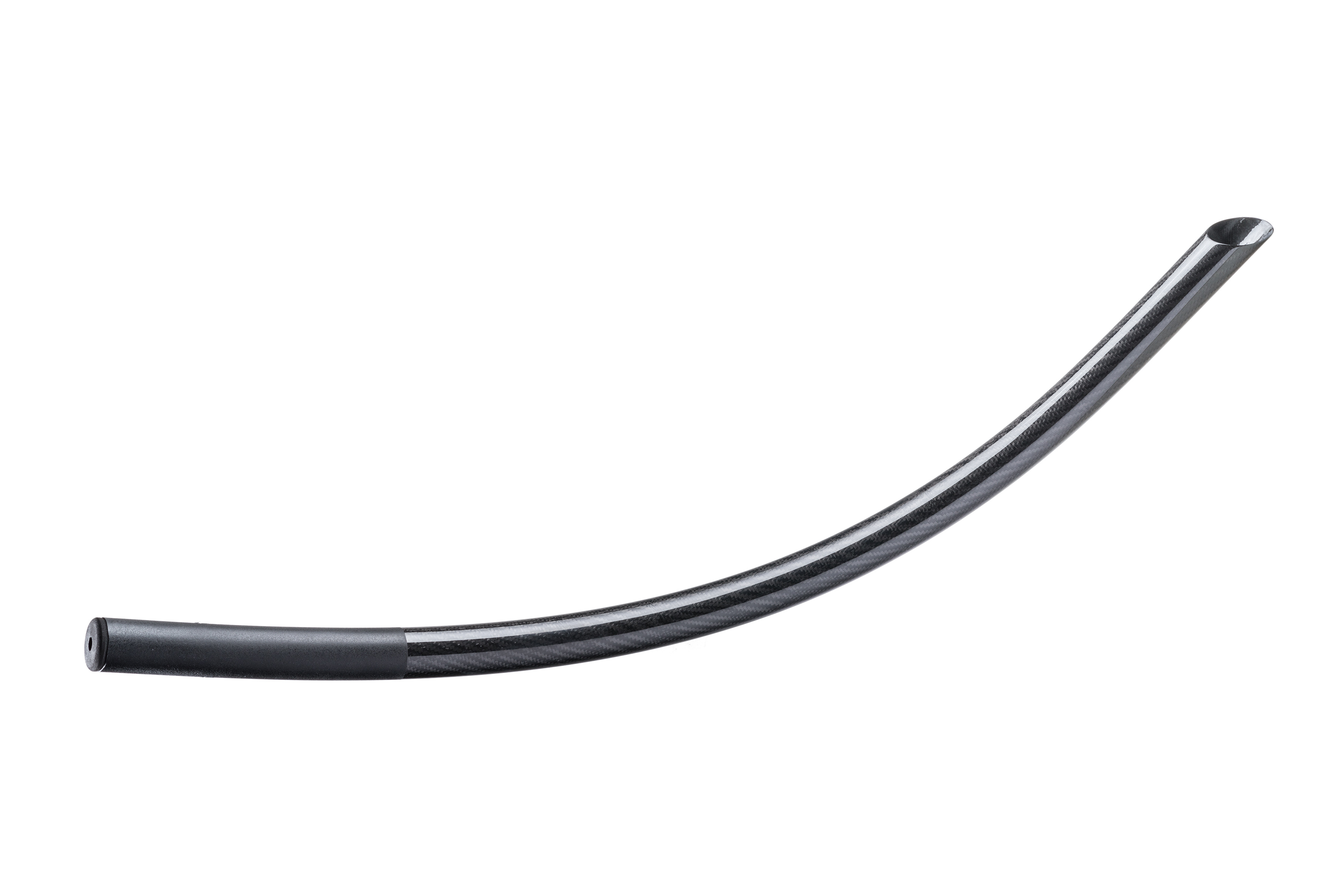 Zakřivená vrhací tyč z vysokomodulovaného uhlíku, zesílená vnější vrstvou z 3K cross woven carbonu.